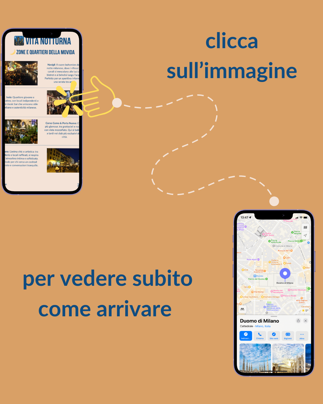 Ogni immagine e indirizzo è cliccabile: con un tocco puoi aprire direttamente la posizione suGoogle Mapse farti guidare fino al luogo.
